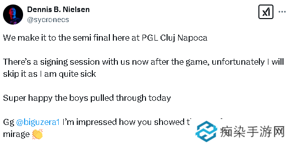 MOUZ教练sycrone:我们成功晋级PGL 克卢日-纳波卡站半决赛。比赛结束后我们有一个签名会,遗憾的是我将缺席,因为我身体不太舒服。