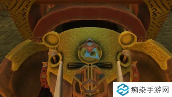 3、将波纹圆环放入此处的凹槽中,根据图案点击中间的按钮,开启机关后,将不死鸟首放进去。