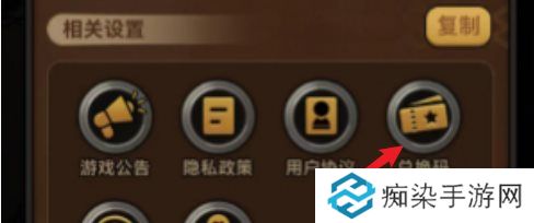 2、然后在设置界面找到兑换码选项。