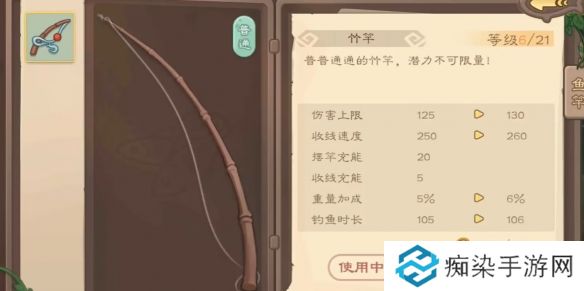 3、我们可以升级鱼竿至6级,进而增加鱼竿的伤害。