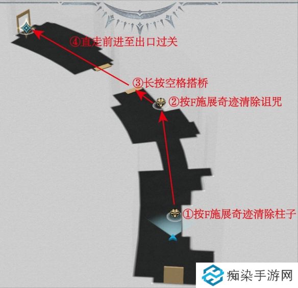 房间III:按缩略地图图示①-③步骤顺序,在对应机关位置操作并按箭头路径移动