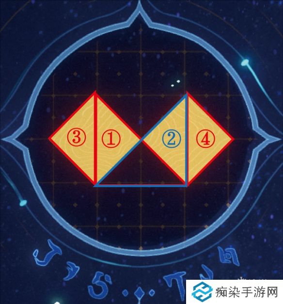 房间III:①左侧大三角形-②右侧大三角形-③下方小三角形-④上方小三角形