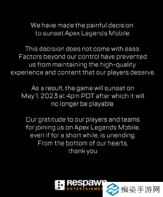 《APEX英雄》手游在2022年5月17日正式发售,但却在2023年5月1日正式停服,中间运营了不足一年。官方表示: