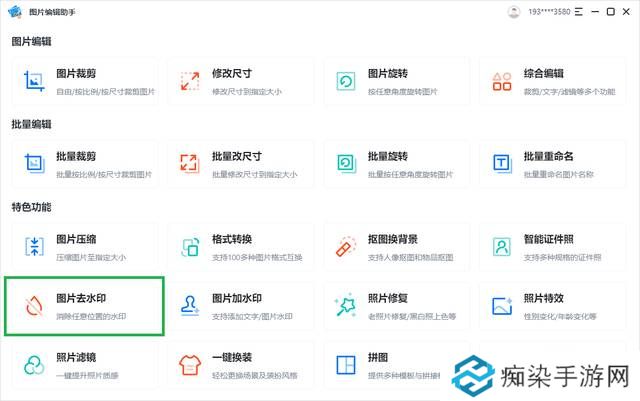 如果图片的背景较为复杂,我们可以使用图片编辑助手来去除水印,电脑找到并打开它之后我们选择图片去水印功能选择上传水印图片。
