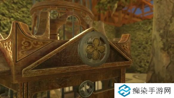 13、旋转凤凰的头部,得到凤凰尾零翎,把凤凰尾翎放置在凉亭花盆下的齿轮上,旋转齿轮,切换到现在,关上左侧机关的门,记住密码。