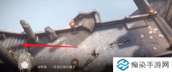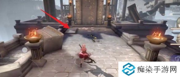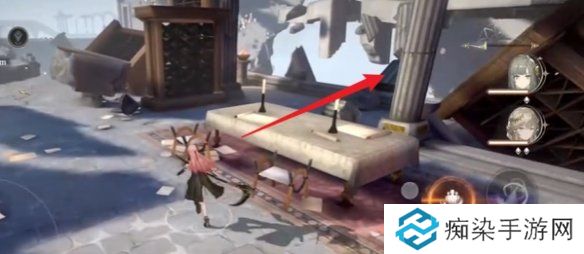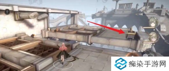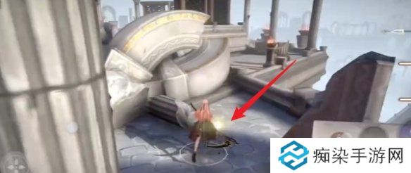 8、石板下降后,从往箭头处断裂的柱子上走。