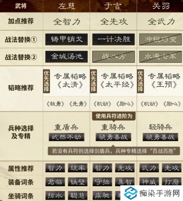 左慈 优先选择专属韬略《太清》,其余可选《敌勇》、《先勇》;