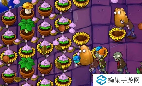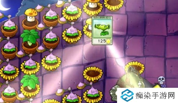 4、接着在第一列摆放毒大蒜投手,之后不断放置花盆。