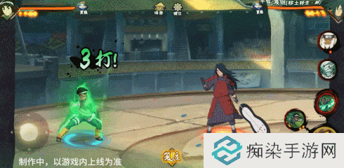 技能一段,忍战李转身向前突进并使用踢击,转身期间可通过摇杆小幅度控制Y轴移动;技能二段,忍战李下蹲随后朝空中冲撞;技能三段,忍战李在空中转身踢腿,并朝地面掷出苦无重创敌人。