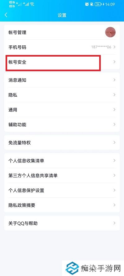 3、然后我们选择账号安全选项;