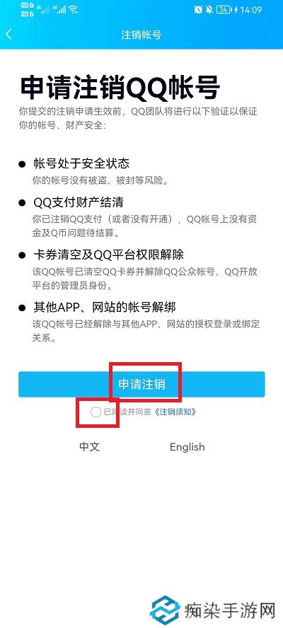 5、进入注销页面后,就可以看到注销账号的各项条件,我们按要求完成后,勾选已阅读,然后选择申请注销,就可以完成QQ账号的注销啦。
