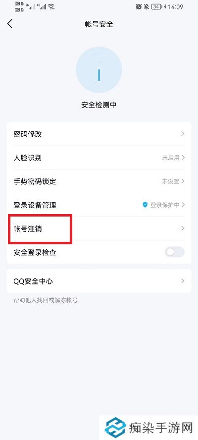 4、就可以看到,倒数第三个选项就是我们需要的账号注销功能,点击进去;