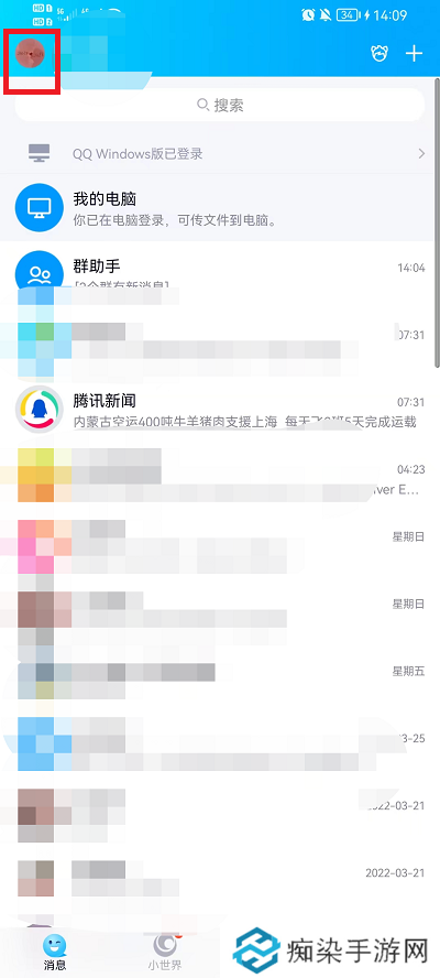 1、首先我们打开手机QQ客户端(以最新版本为例),然后点击右上方——我们自己的头像;