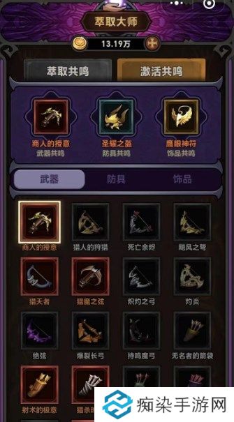 比如说武器可以选择商人的授意,这样就可以得到100%的连弩伤害,另外再加上鹰眼神符,得到90%的物理攻击加成,这样两个能够放在一起共鸣,就可以加强伤害能力。