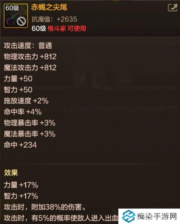 赤蝎之尖尾是DNF手游中的格斗家职业60级史诗爪,有着攻击时概率触发出血,并附加伤害的效果,接下来就让我们一起了解一下DNF手游赤蝎之尖尾的属性怎么样吧。