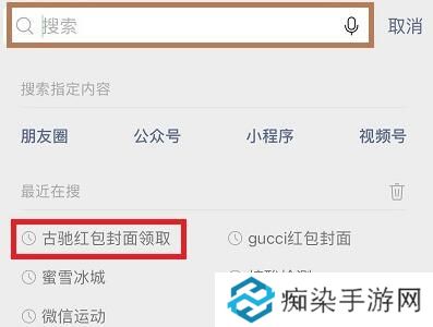 1、首先进入微信,再输入红包名,比如“古驰红包封面领取”。