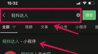1、通过微信上搜索【轻抖平台】小程序,点击进入【轻抖平台公众号】;
