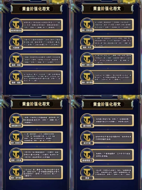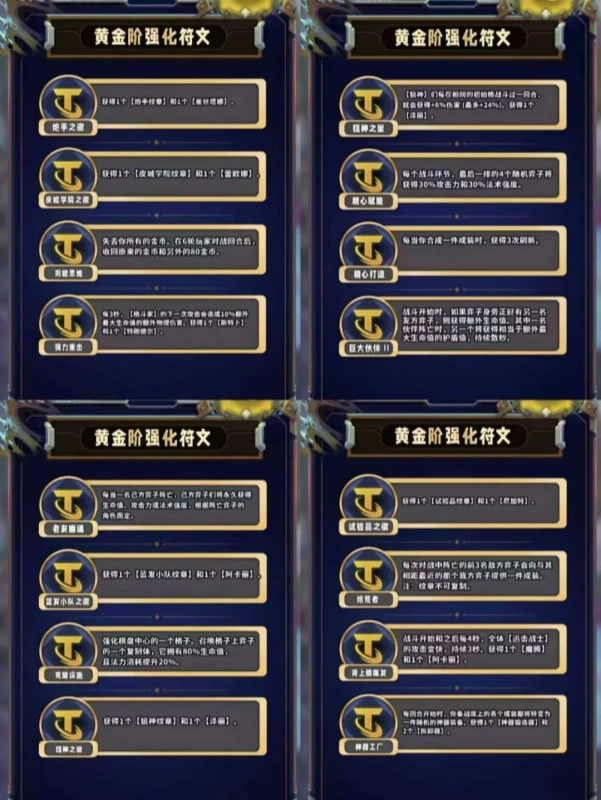 以上就是小编带来的金铲铲之战s13黄金阶强化符文一览详细介绍,有需要的玩家千万别错过了,想要更多游戏攻略记得关注游戏部落手游。