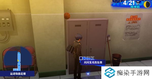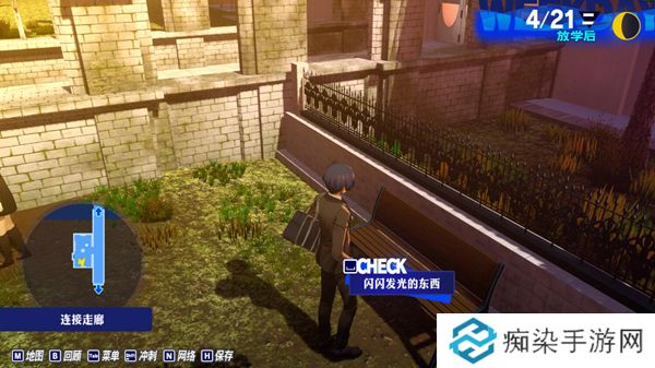 学校连接走廊的长椅上可以发现个闪闪发光的东西,是一个碎片。