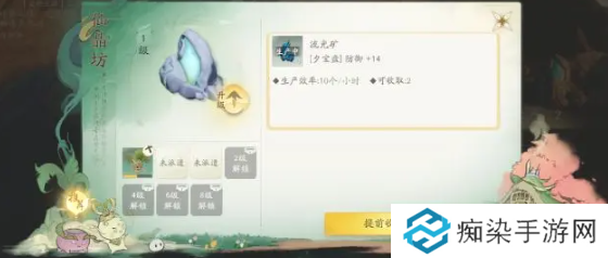 2、建筑产物:流光矿、盈风矿、丹烛矿、岩砂矿(可在万灵福地-长生丹炉中炼制丹药)。