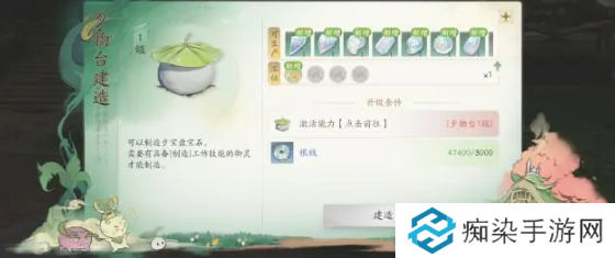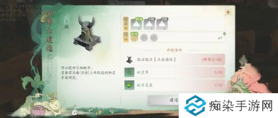 1、解锁条件:角色等级≥20级时,消耗先天灵元在灵根玄脉激活后,可在夕物台位置建造。