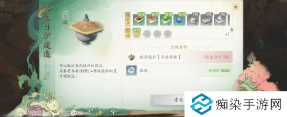 1、解锁条件:角色等级≥6级时,消耗先天灵元在灵根玄脉激活后,可在长生丹炉位置建造。
