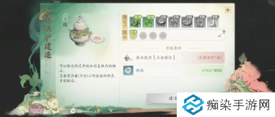 1、解锁条件:角色等级≥9级时,消耗先天灵元在灵根玄脉激活后,可在灵膳烘炉位置建造。