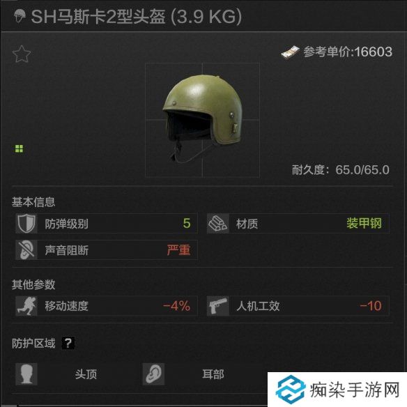 65耐久,头顶耳部防护,严重声音阻断,最高加装五级面罩,五级装甲钢全防,硬是真的硬,但真的什么都听不见,谨慎使用。