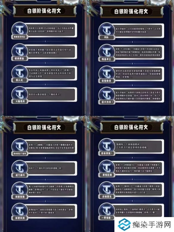 以上就是小编分享的金铲铲之战s13白银阶强化符文一览详细介绍,感兴趣的小伙伴可以了解一下,获取更多游戏攻略就在游戏部落手游。