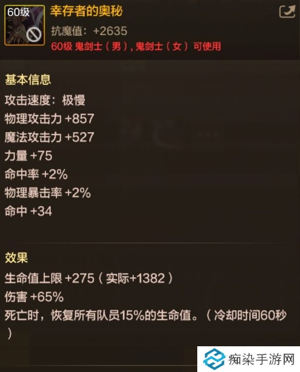 幸存者的奥秘是DNF手游中的鬼剑士职业60级史诗巨剑,有着特殊的死亡时回复队友血量的能力,此外还提供了不少生命值和伤害加成,接下来就让我们一起了解一下幸存者的奥秘怎么样吧。