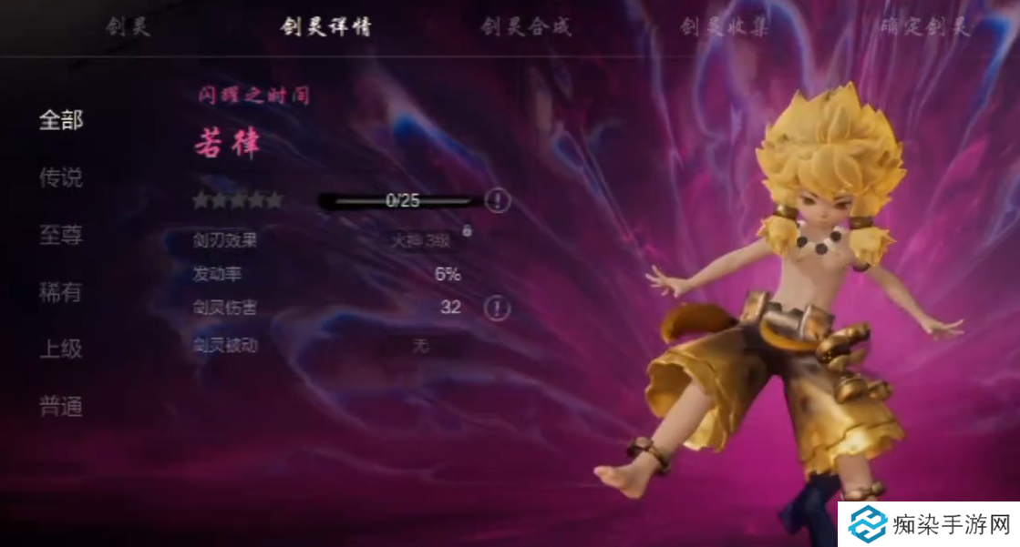 因为它的六维属性同样惊讶,特别是力量,技巧,智力都达到了6点。然后其他的便是3点,接着他的剑刃效果叫做火神。可以让你在攻击时附加我属性伤害也就是灼烧状态,并且可以获得更高的爆发伤害。触发概率也高达32%,所以几乎是最顶尖的剑灵之一了。