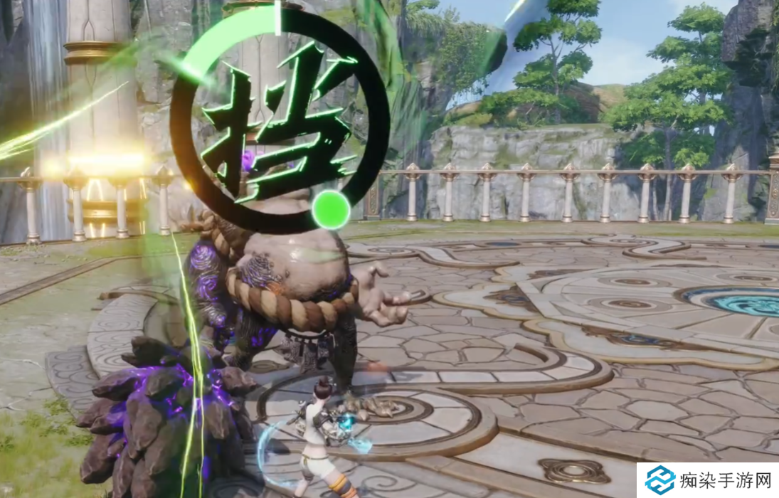 当我们抖掉攻击或者承受伤害之后,它的头顶上会出现一个挡字。说明这一段时间他都在格挡,所以我们最好不要用出强大的技能,不然会被抵消伤害,这时尽量用普通攻击去消耗它。当读条满之后,他就会朝着我们飞出他的大棒。