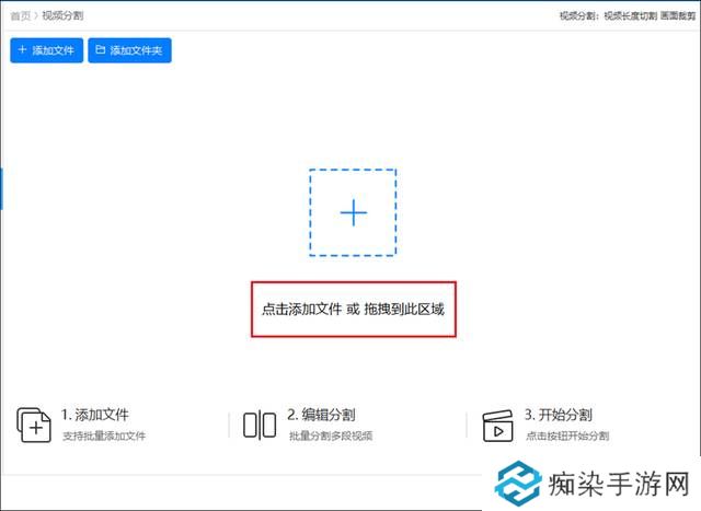 选择好操作功能之后,点击上传需要分割的视频文件。可以直接点击添加文件,也可以直接拖动上传文件。