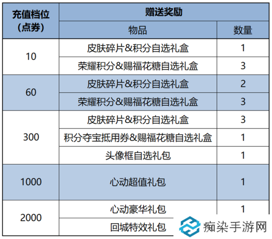 皮肤碎片&积分自选礼盒:打开礼包可任意选择以下奖励之一:荣耀积分*10或皮肤碎片*1
