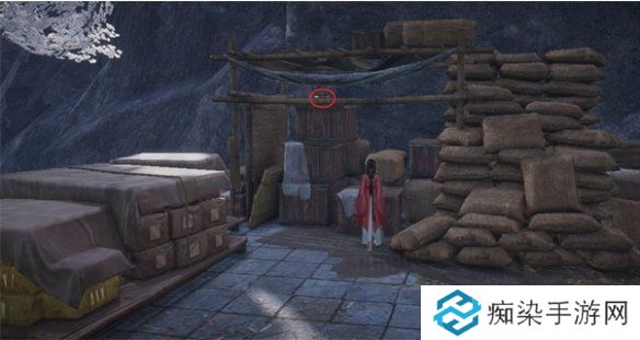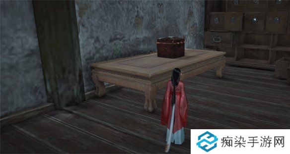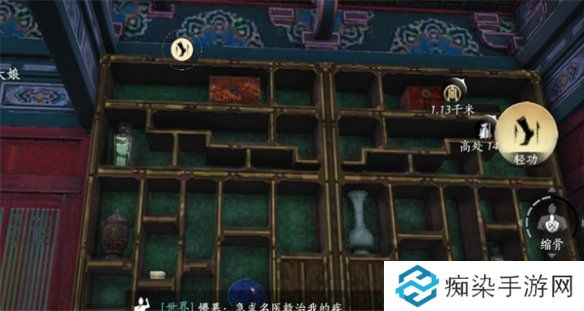 2、在小屋内使用缩骨奇术,对着房梁,点轻功跳上去,即可看到掌中宝。