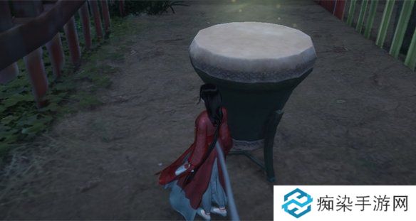 1、前往图中的位置,使用缩骨奇术,可以看到地上有个鼓。