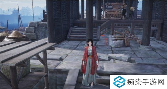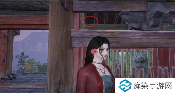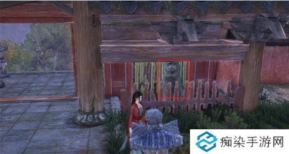 1、前往图中的位置,在柴王庙门口的房梁上。
