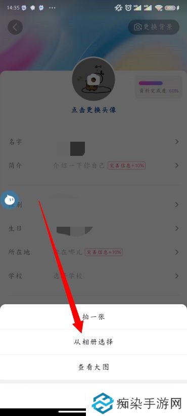 4、在弹出的选项中选择并点击【从相册选择】,当然有的小伙伴也可以直接现场拍摄照片当做头像;