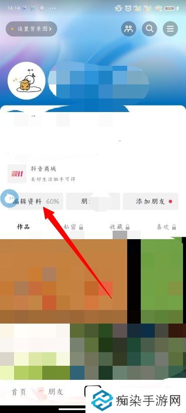 2、然后在个人页面的作品上方有个【编辑资料】,我们点击进去;