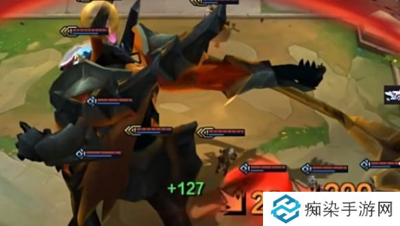 4、晒一嚼:对目标造成568物理伤害和1.25秒晕眩。随后施加一层流血效果,在5秒里造成213+20%最大生命值的真实伤害。