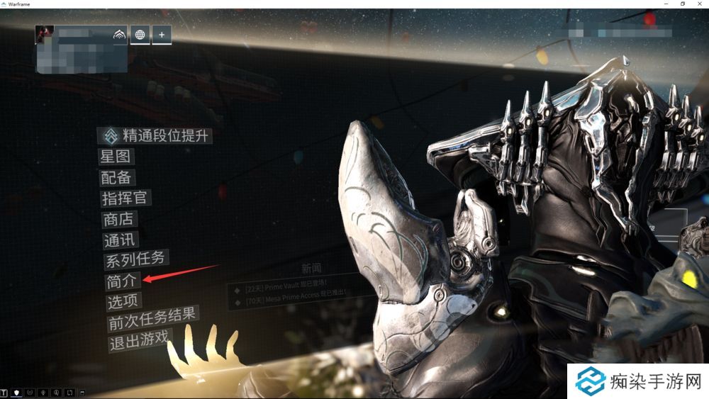 进入星际战甲游戏,按下ESC键打开游戏菜单。