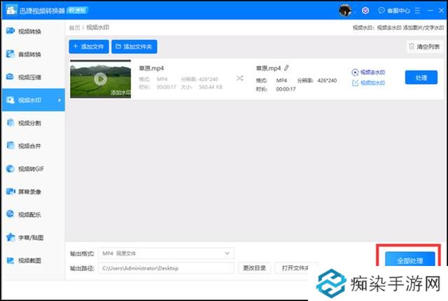 第三步 点击右下角的【全部处理】即可实现对文件的处理。处理完成的文件会自动保存到桌面,退出返回桌面查看即可。