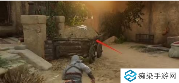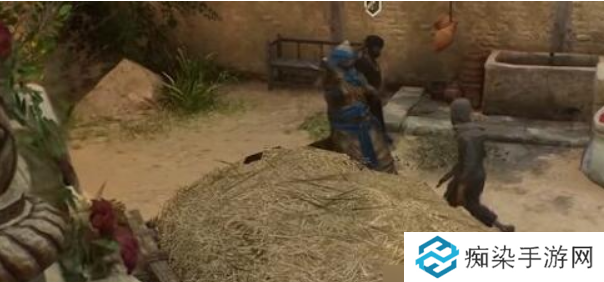 2、跳进草堆等待士兵出现,然后跳出暗杀所有士兵即可获得碎片。