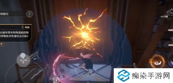 2、上来会看到一个有裂痕的物体挡住了路,使用过载可以破坏,继续往前走。