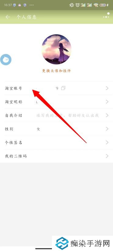 4、来到个人信息页面,选择并点击【淘宝账号】;