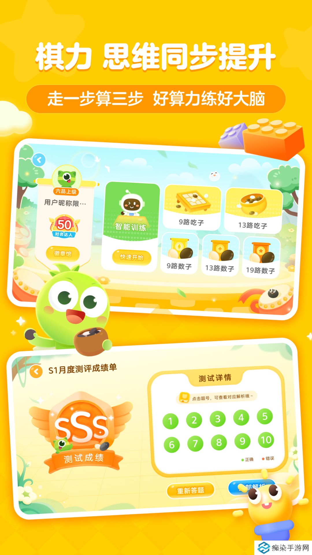 想要去学习围棋,那么它会是个不错的选择,其中带来了许多的互动元素以及真人的教学方式,满足不同场景下的学习需要,更是有着故事绘本以及棋盘套装等给到,通过棋形记忆、计算,能很好地培养思维能力。