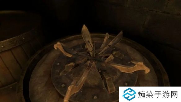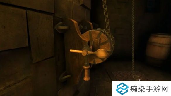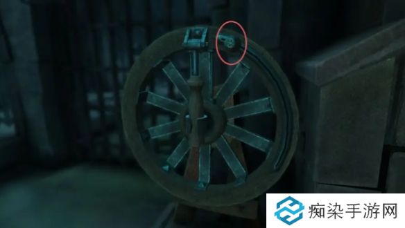 5、回到初始地点会得到勺子,将勺子放入代替铆钉,点击拉动摇把,进入地下室。