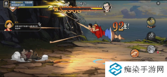 《航海王壮志雄心》的动作系统主要由普攻、技能、空岛贝、援护技组成,当被敌人击中时,你可以点击脱身按钮,以避免吃到全套Combo。而当对方血量低于25%时,则会触发终结技。施放得当的话,战斗会变得更加简单。