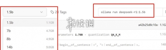3、选择1.5b或7b即可,接着在右上角的代码复制在命令行中运行。