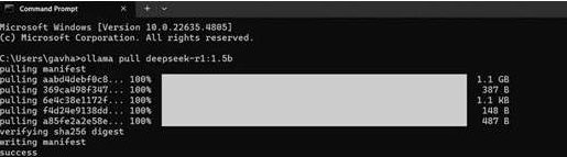 5、需要注意的是我们只能在命令行中使用deepseek,若想更为方便则需要利用第三方客户端。